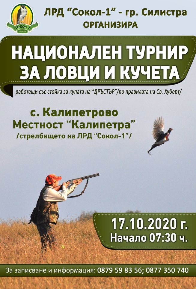 ЛРД "Сокол-1"град Силистра организира национален турнир за ловци и кучета, работещи със стойка по правилата на "Св. Хуберт" за Купата на "Дръстър" .