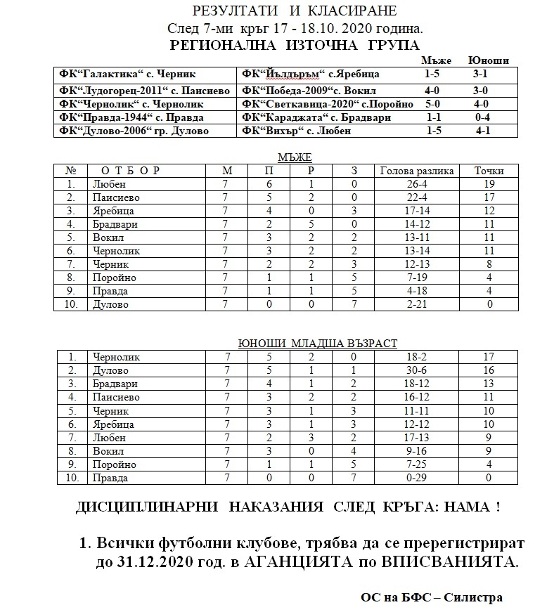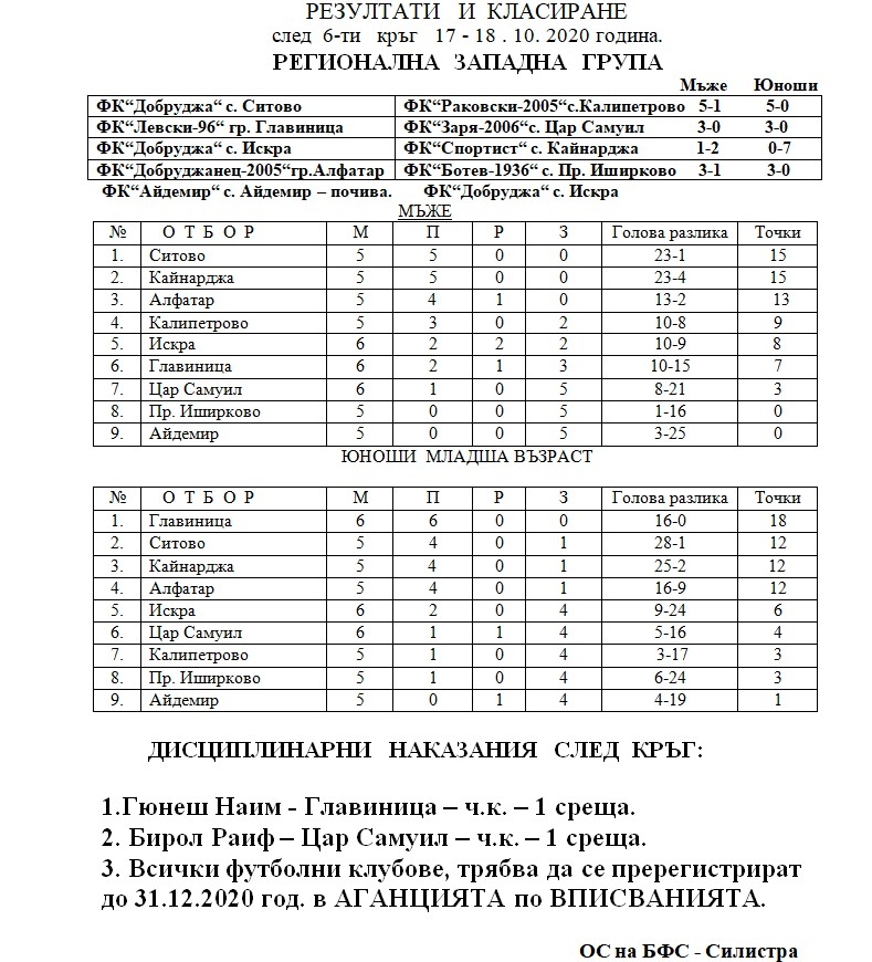 Резултатите от последния кръг, актуално класиране и наложените дисциплинарни наказания след кръга можете да видите на прикачените файлове.