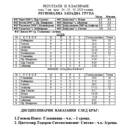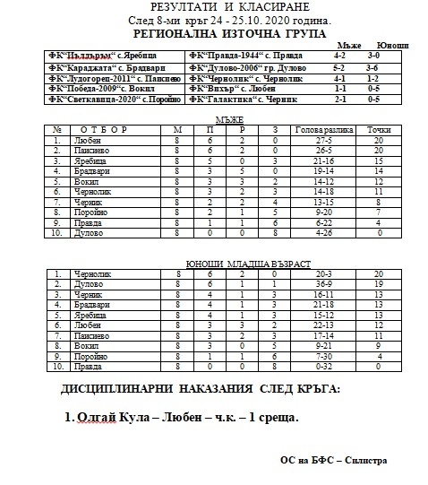 Резултатите от последния кръг, актуално класиране и наложените дисциплинарни наказания след кръга можете да видите на прикачените файлове.