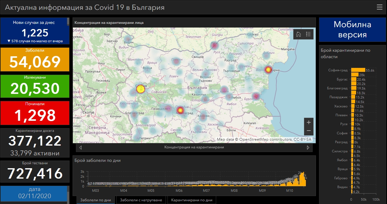 1225 са новодиагностицираните с коронавирусна инфекция лица през изминалите 24 часа. За последното денонощие са направени общо 5 457 PCR теста.