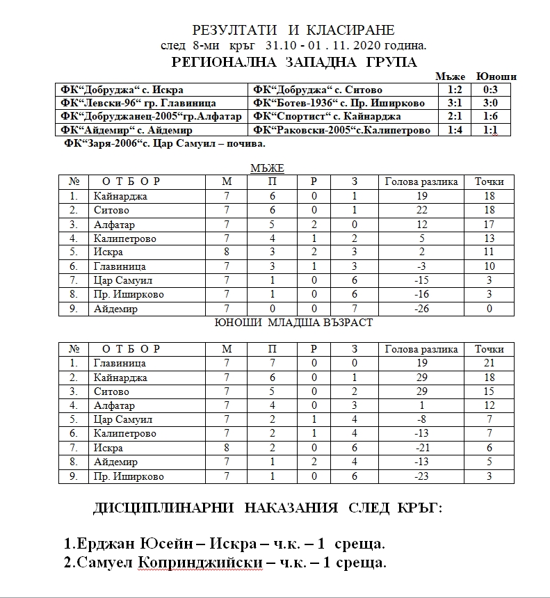 Резултатите от последния кръг, актуално класиране и наложените дисциплинарни наказания след кръга можете да видите на прикачения файл.