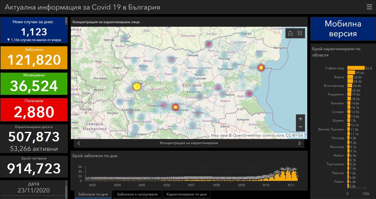1123 са новодиагностицираните с коронавирусна инфекция лица през изминалите 24 часа. За последното денонощие са направени общо 2 787 PCR теста.