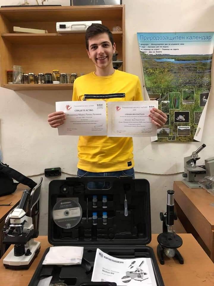 В направление биология, биоразнообразие и биомедицина Мохаммад-Мурад Рашад Халвани от Екоклуб "Пеликан " към ОДК Силистра се представи със свой проект за зоопланктона в блатото Малък Преславец. Проектът му бе оценен високо и той бе отличен със специалната награда за съществен принос в изучаване на биоразнообразието.