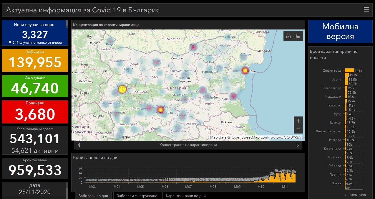 3327 са новодиагностицираните с коронавирусна инфекция лица при направени общо 9179 PCR теста през изминалите 24 часа, Това означава, че 36.2% от тестваните са дали положителен резултат. Така общият брой на потвърдените случаи става 139 955, от които активни са 89 535.