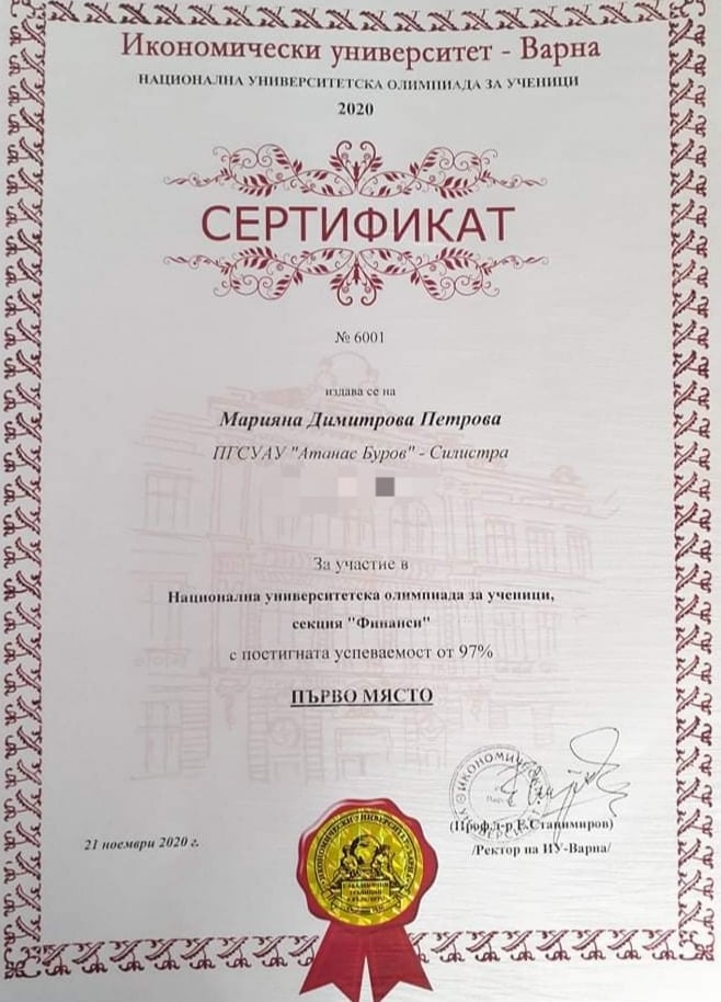 Участието в олимпиадата ги включи в ранен прием ОКС "бакалавър" в ИУ – Варна и избор на специалност. Това е прекрасен начин настоящите гимназисти на ПГСУАУ да се докоснат и да достигнат по-бързо до желаното от тях икономическо образование.