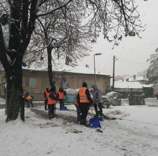 На ръка се обработваха тротоарите в близост до болницата, поликлиниката и центъра.