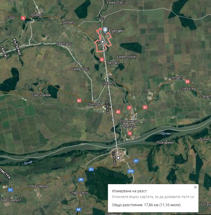 Тя се намира на 18 км от Тутракан, от другата страна на Дунав.