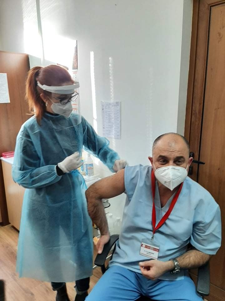 Първия ваксиниран в областта стана директорът на ЦСМП д-р Енчо Василев.