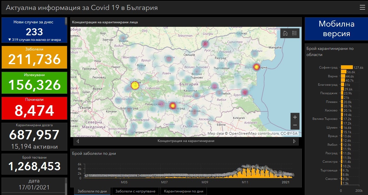 233 са новодиагностицираните с коронавирусна инфекция лица през изминалите 24 часа, което е с 319 случая по-малко от вчера. За последното денонощие са направени общо 4 628 теста, oт които 3321 са PCR, а 1307 са с бърз антигенен тест.
