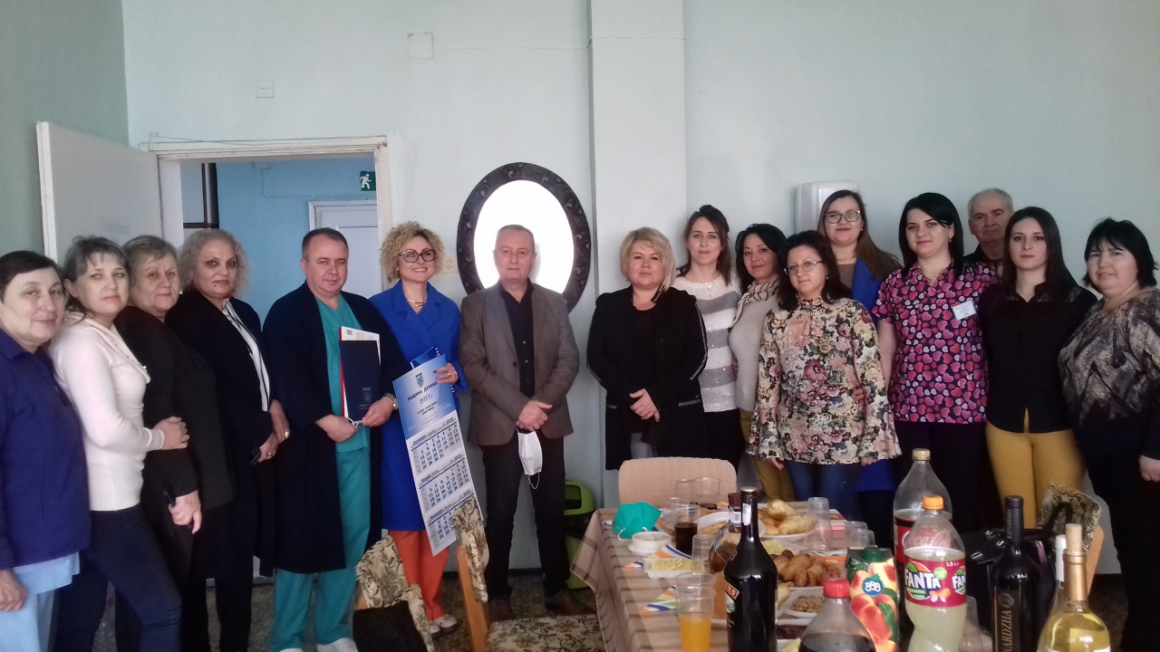 На скромното тържество в празничния ден присъстваха инж. Невхис Мустафа-председател на ОбС-Дулово и д-р Юксел Ахмед-кмет на Община Дулово, които поздравиха лично екипа и поднесоха поздравителен адрес и подаръци.