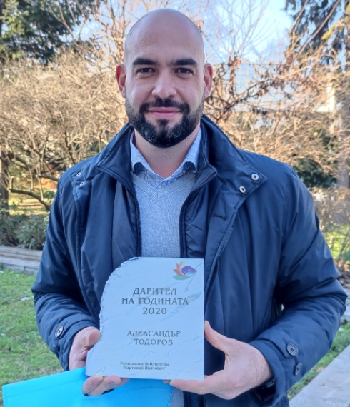 Александър Тодоров получи наградата от регионалната библиотека "Партений Павлович" в Силистра за "Дарител на годината" на 2020-та година.