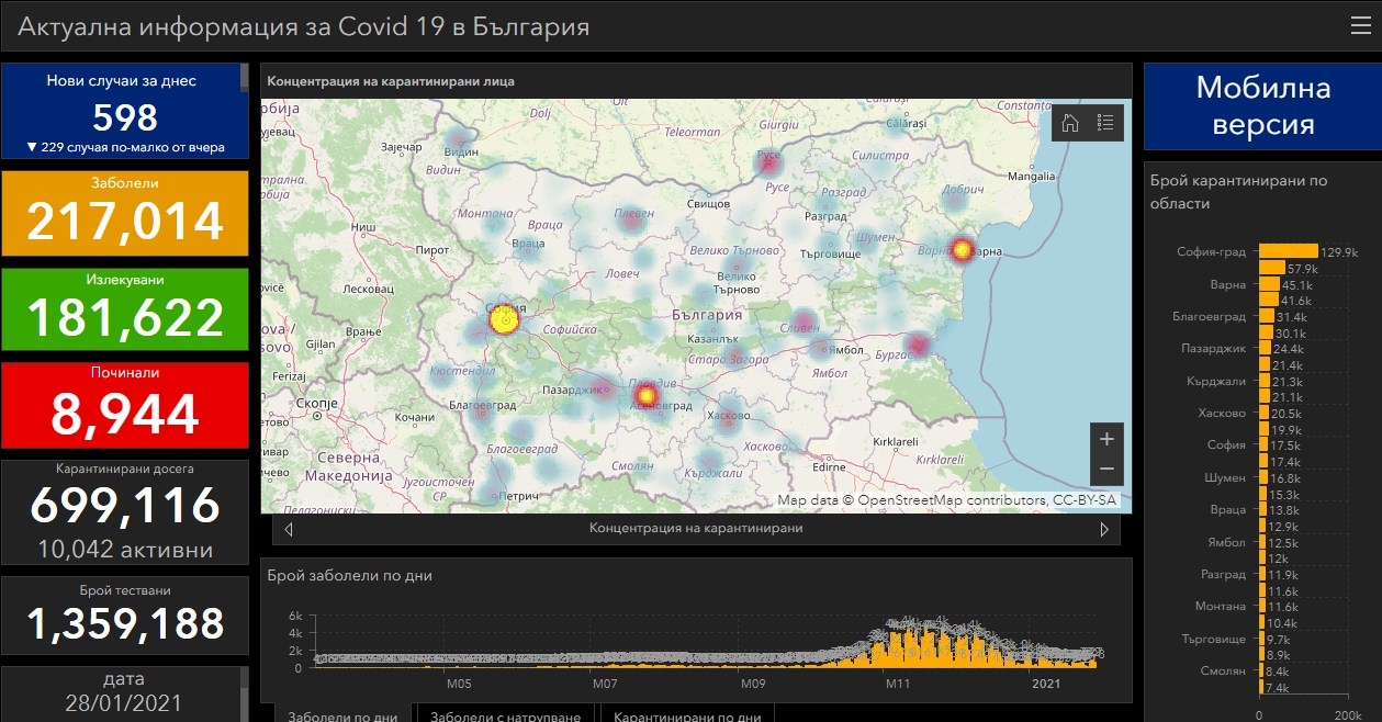 598, с 229 по-малко случая от вчера, са новодиагностицираните с коронавирусна инфекция лица през изминалите 24 часа, или 4, 5% от тестваните. За последното денонощие са направени общо 13 279 теста, oт които 3690 са PCR, а 9589 са бърз антигенен тест.