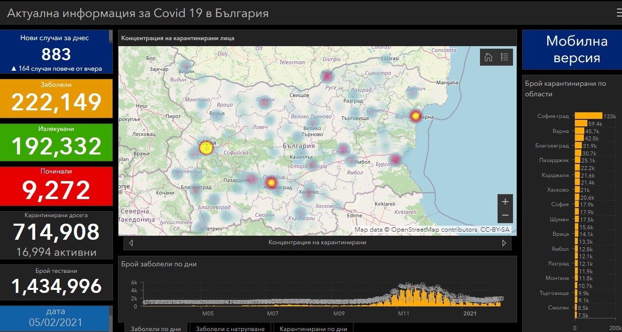 Това означава, че 8,38% от пробите са положителни. Така общият брой на потвърдените случаи става 222 149 , от които активни са 20 545. 780 са излекуваните през последното денонощие, а общият им брой е 192 332. Ваксинираните лица са общо 54 025, като 3 901 са ваксинирани за денонощието. Хоспитализираните лица са 3 033, от които 277 се намират в интензивното отделение.