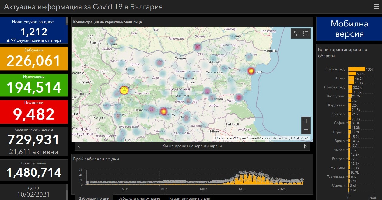 За последното денонощие са направени общо 13228 теста, oт които 6153 са PCR, а 7075 са с бърз антигенен тест. Така общият брой на потвърдените случаи става 226 061, от които 22 065 са активни.
