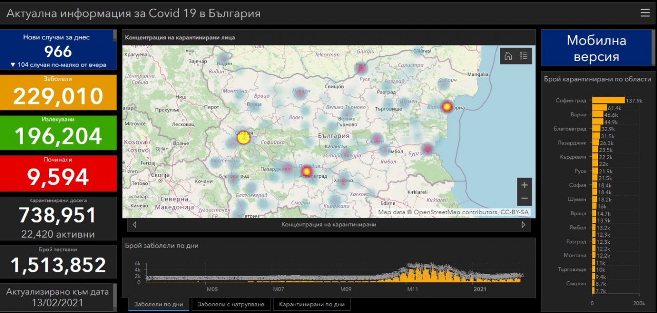 Това означава, че 8,65% от пробите са положителни. Така общият брой на потвърдените случаи става 229 010, от които активни са 23 212. 522 са излекуваните през последното денонощие, а общият им брой е 196 204. Ваксинираните са общо 74 694, като 3571 са ваксинирани за денонощието.