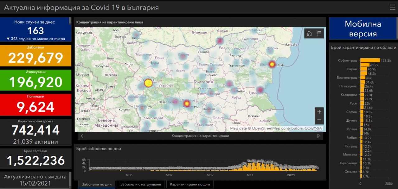 Хоспитализираните лица са 3 425, от които 301 се намират в интензивно отделение. Починалите лица с доказана коронавирусна инфекция са общо 9 624. 16 от случаите са от последните 24 часа.