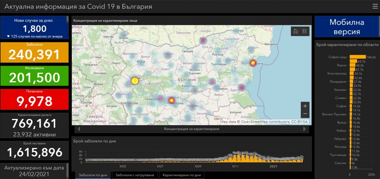 Това означава, че 14% от пробите са положителни. Така общият брой на потвърдените случаи става 240 391, от които активни са 28 913. 471 са излекуваните през последното денонощие, а общият им брой е 201 500. Поставените дози ваксини са общо 148 226, като 17 163 лица са ваксинирани за денонощието. Хоспитализираните са 4 037, от които 349 се намират в интензивното отделение.