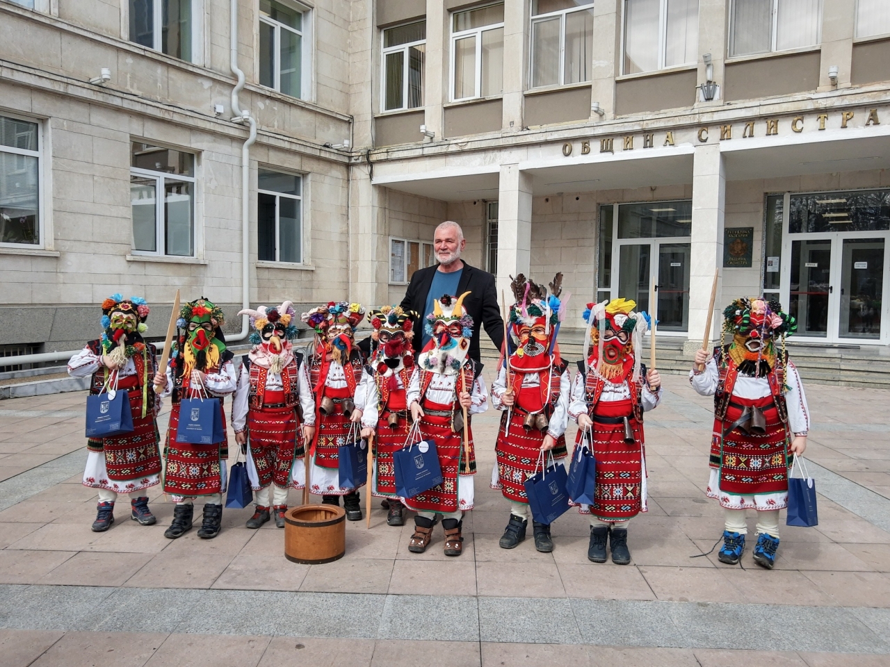 Кметът на Община Силистра д-р Юлиян Найденов посрещна пред сградата на администрацията малките кукери от група "Смехорани" на ДГ "Иглика".