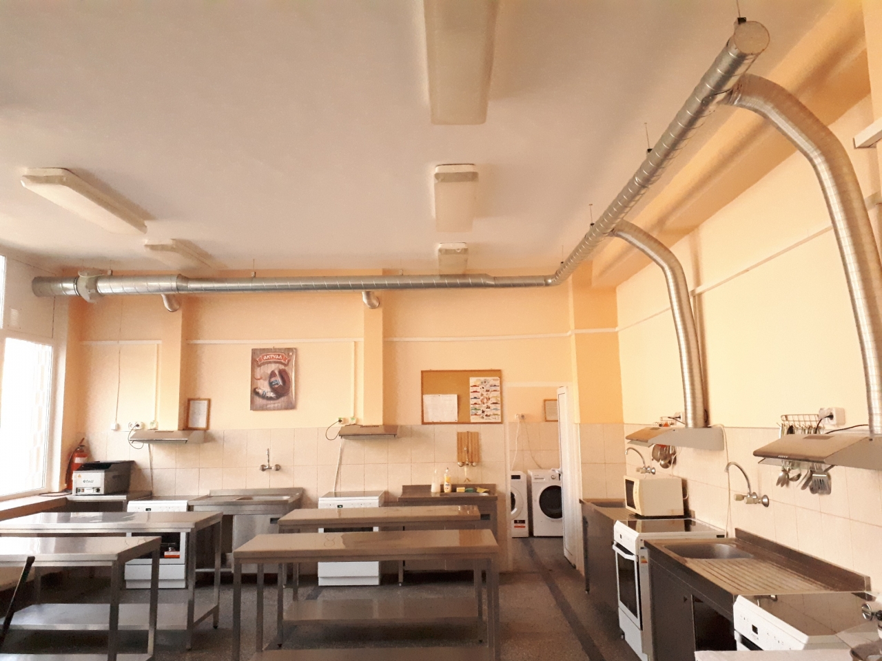 Бъдещите ресторантьори вече разполагат с готварски печки с аспирация и вентилационна система към тях, климатична инсталация в учебните кухни, съдомиялна машина, пералня, сушилна, професионални кафемашини, уред за готвене на пара, метална резачка за месо, мултикукър, Ear Fire, микровълнова печка, хлебопекарна, блендер, шейкър, цитруспреси, кухненски робот, миксери и други уреди и съоръжения необходими за професионалната подготовка на учениците.