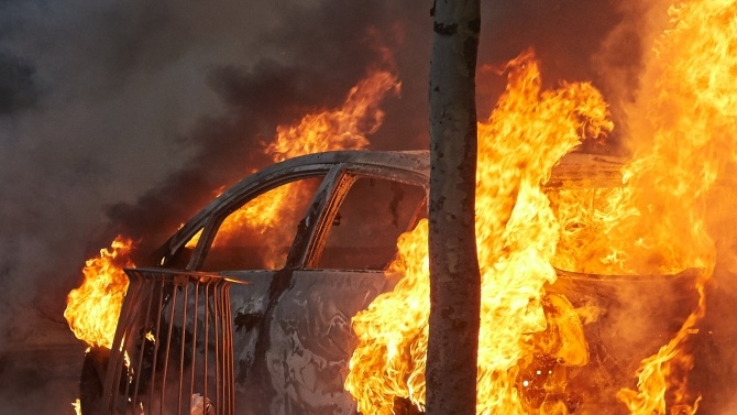 След удара колата се е запалила.