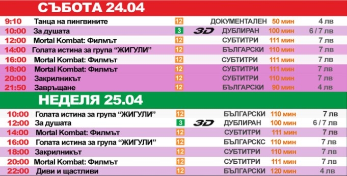 Касовия български хит "Голата истина за група Жигули" също може да бъде гледан през почивните дни, а също така детския анимационен филм "За душата 3D" .
