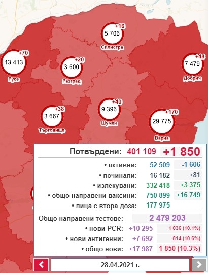 16 са новозаразените за изминалото денонощие спрямо 24 ден по-рано.