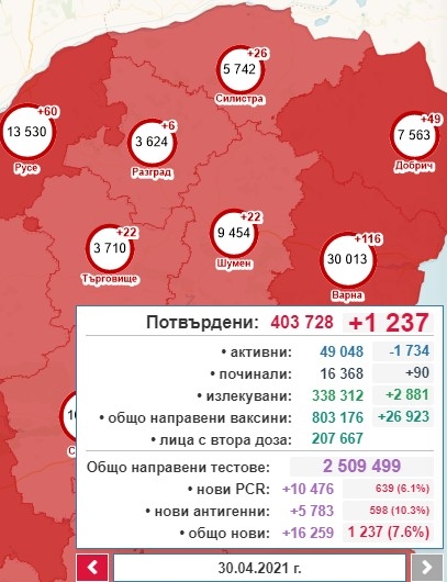 Така общият брой на потвърдените случаи става 403 728, от които активни са 49 048.