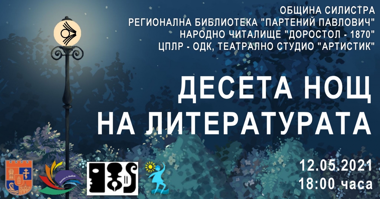 Съвременна европейска литература в нови български преводи ще бъде представена и тази година на юбилейната десета Нощ на литературата. Литературният хепънинг ще бъде на 12 май 2021 г. и в него ще се включат освен Силистра и още 13 български града - Бургас, Варна, Велико Търново, Враца, Добрич, Ловеч, Монтана, Перник, Пловдив, Русе, София, Стара Загора, Шумен.