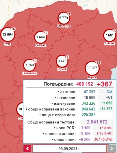 Общо заболелите до момента са 406,192. 47 357 са активните случаи.