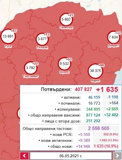 Общо заболелите до момента са 407 827. 46 159 са активните случаи.