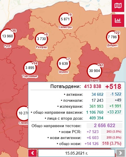 518 са регистрираните нови заразени с коронавирус в България или това са 12 случая повече от вчера. Това разкриват актуалните данни от Единната информационна система.