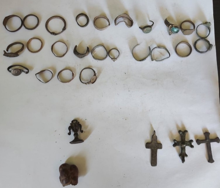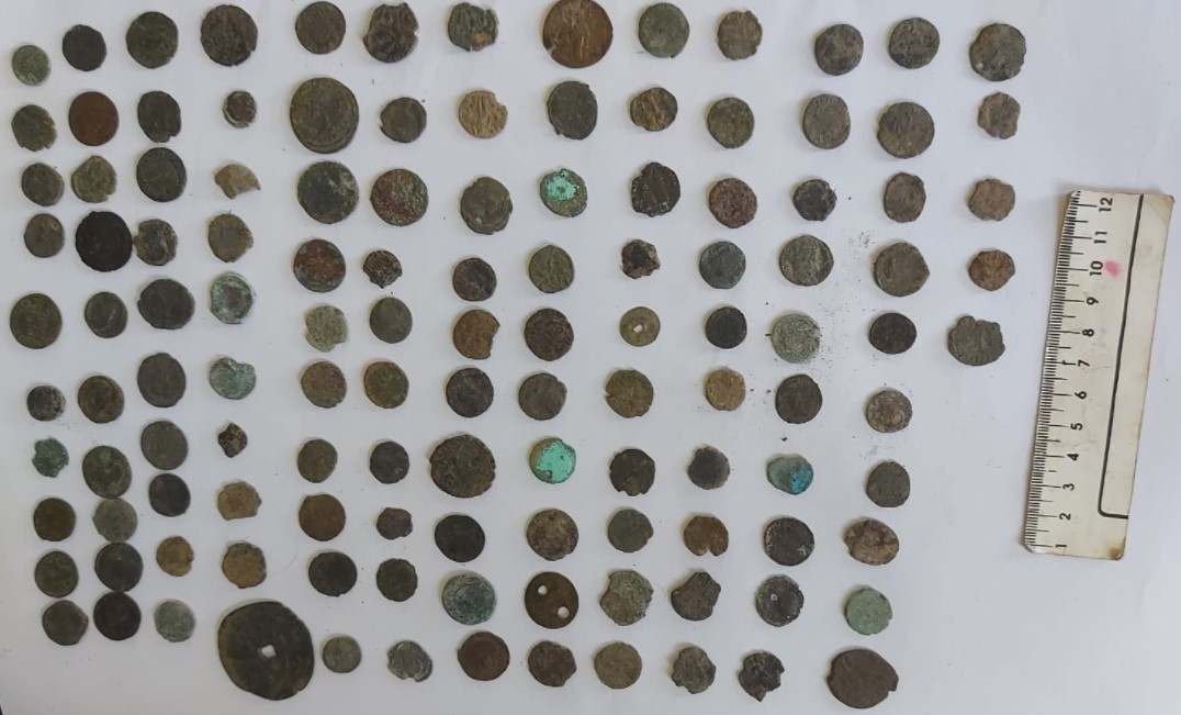 В дома били открити общо 643 римски и гръцки старинни монети, пръстени, печати и други антични предмети. Намерени са и два метал-детектора, с които е извършвана незаконната дейност.
