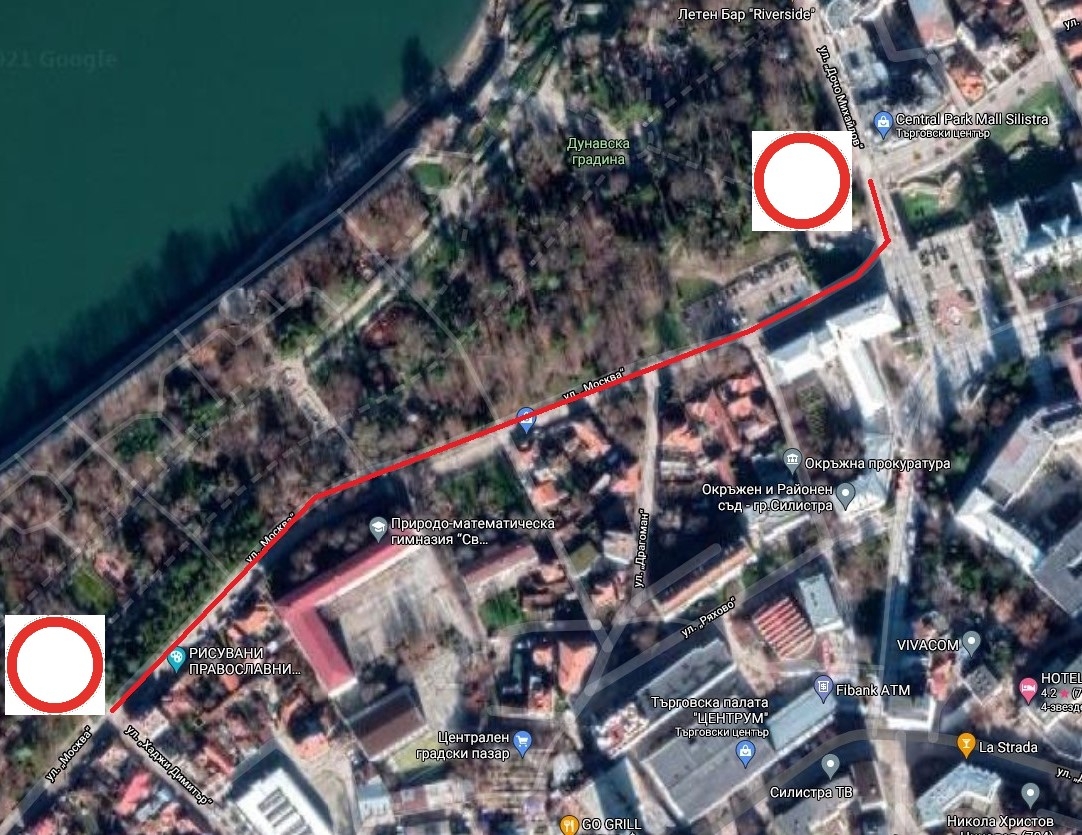 Със заповеди на кмета на Община Силистра д-р Юлиян Найденов временно се затваря утре за движение на 24.06.2020г./понеделник/ от 17:30 до 21:00ч. - ул. "Москва" от пресечката с ул."Хаджи Димитър" до пресечката с ул."Гено Чолаков" заради абитуриентски бал.