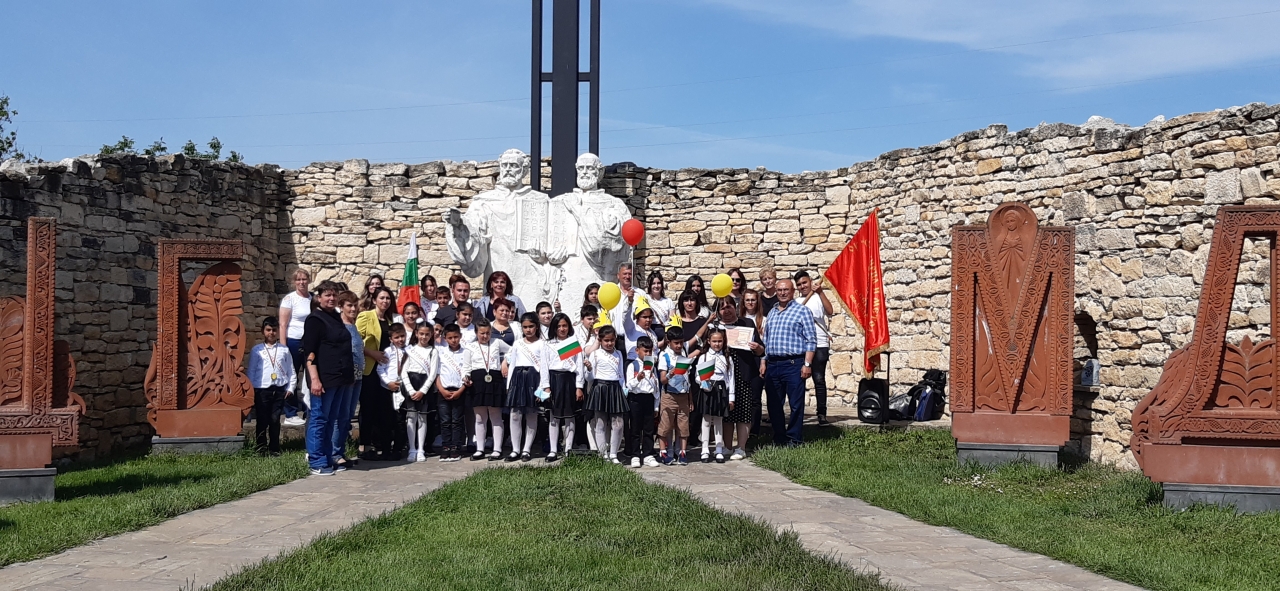 Поклон, със специален венец, пред делото на светите равноапостоли Кирил и Методий, до техният паметник и сред техните букви, направиха възпитаници на училището в село Секулово.
