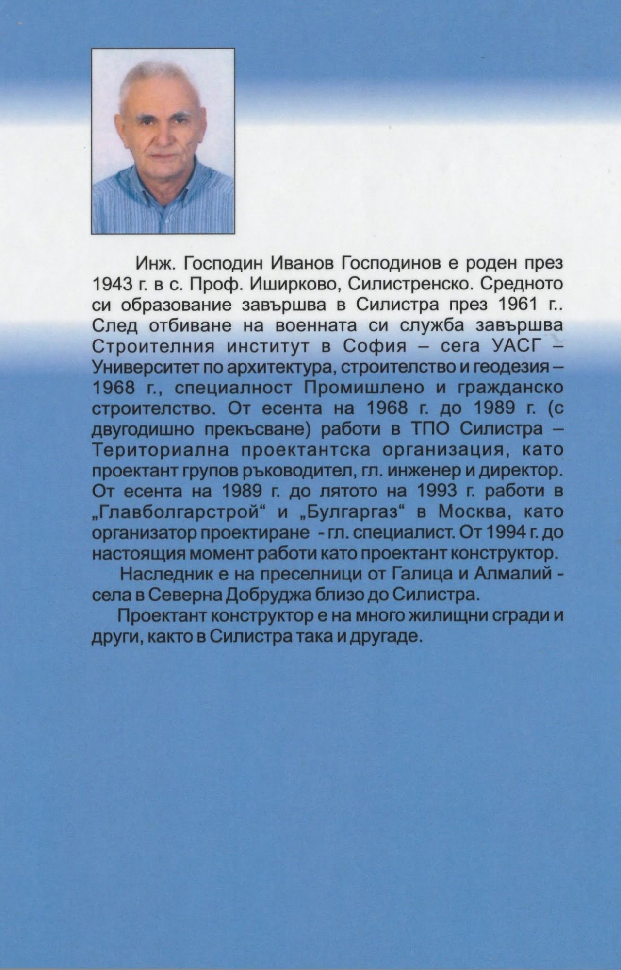 Силистренският сайт Версинаж разказва за това, как в първите дни на м. юни 2021 г. излезе от печат второто преработено издание на разработката "Мостът Силистра – Кълъраш" (опит за обосновка) с автор инж. Господин Иванов Господинов – специалист по промишлено и гражданско строителство, възпитаник на някогашния Строителен институт в София (сега УАСГ). В периода 1968-1989 г. той работи в тогавашната Териториална проектантска организация в Силистра, в която през годините е бил проектант, групов ръководител, главен инженер и директор.