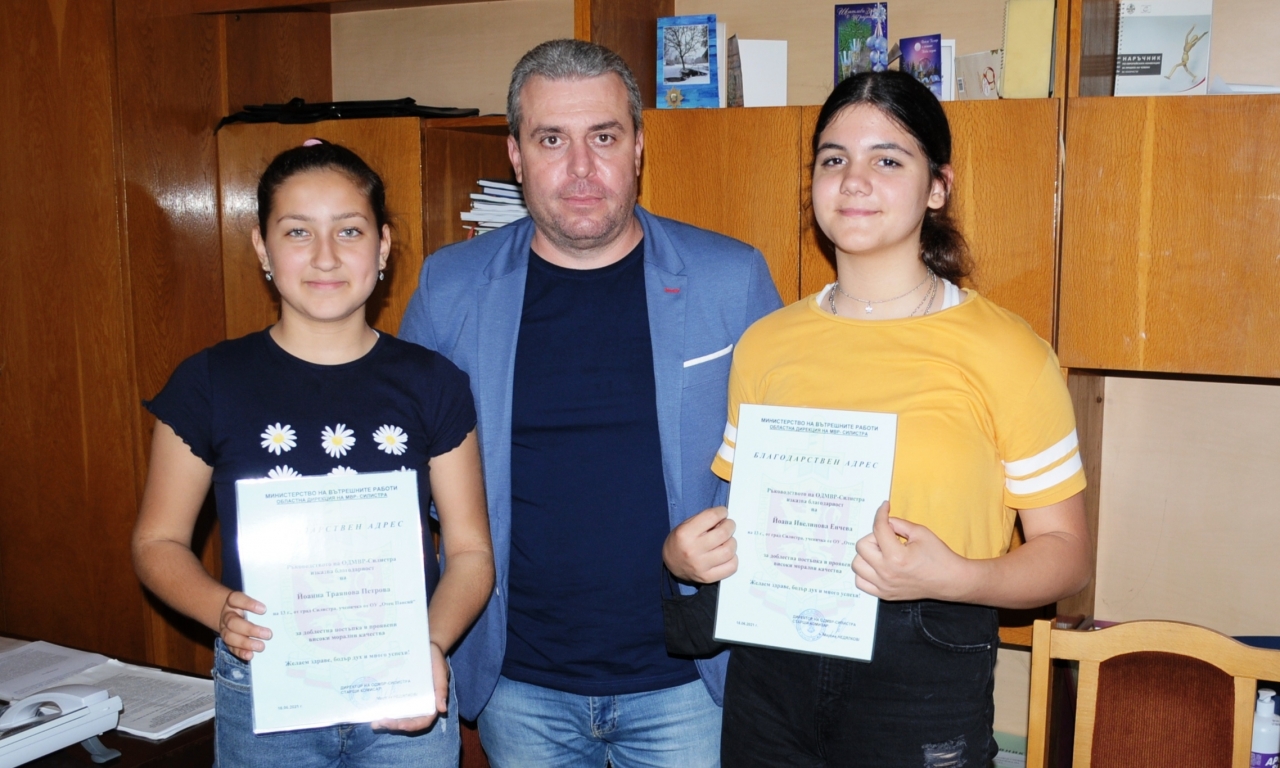 Директорът на ОДМВР-Силистра старши комисар Мартин Недялков отличи три момичета от областния град за извършена достойна постъпка.
