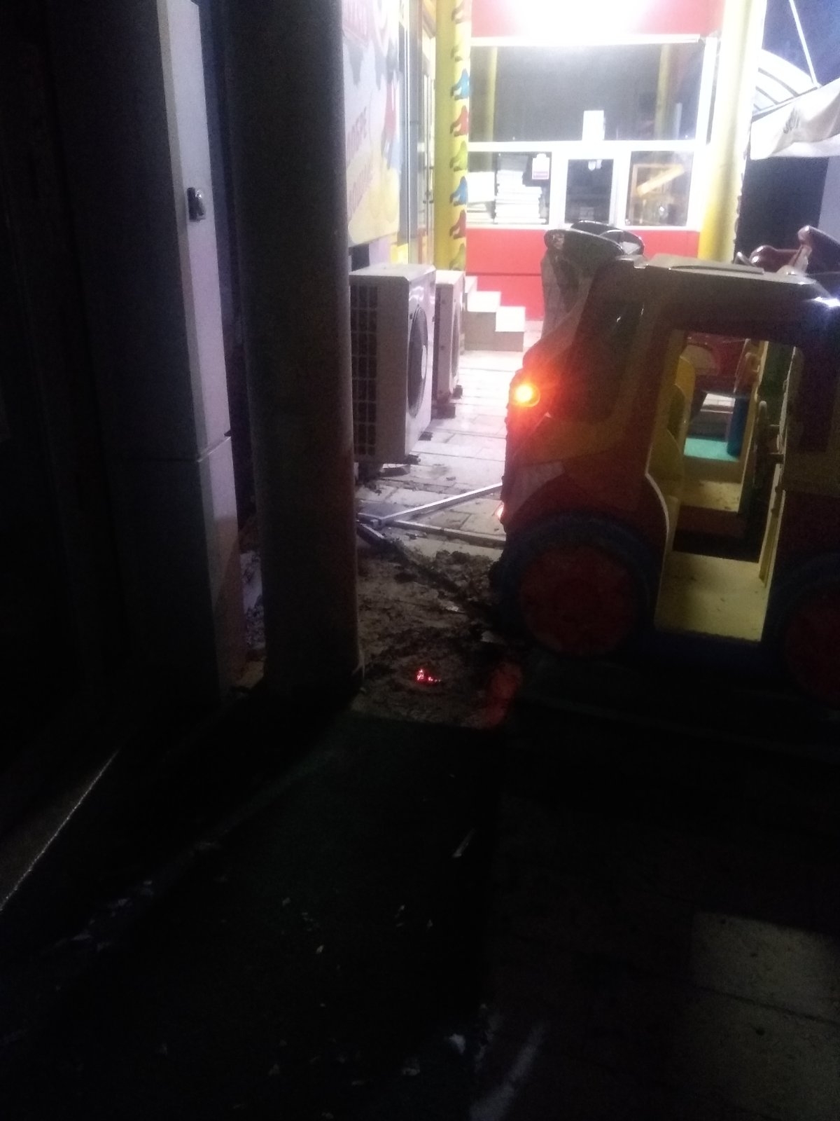 Пристигналите на място охранителите виждат да горят количките-клатушки, на които обикновено играят деца.