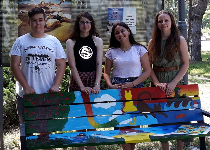 Вчера те изрисуваха с приказни мотиви двете пейки по предварително изработен проект, с което мястото за четене стана по-привлекателно за посещение.