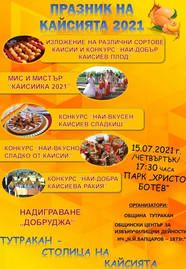 • Изложение на различни сортове кайсии, отглеждани в Община Тутракан и конкурс "Най-добър кайсиев плод"