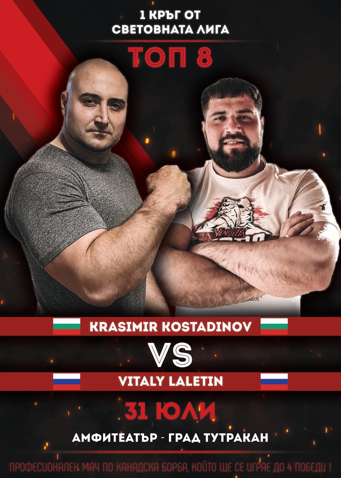 В Тутракан, като част от програмата на фестивалът "Огненият Дунав", се проведе 1-ви кръг от Световната лига по канадска борба - професионалният мач е между Красимир Костадинов и Витали Лалетин (Русия).