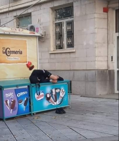 На нея мъж е легнал върху фризер за сладолед, разположен на площад "Свобода" пред страничния вход на силистренския съд.