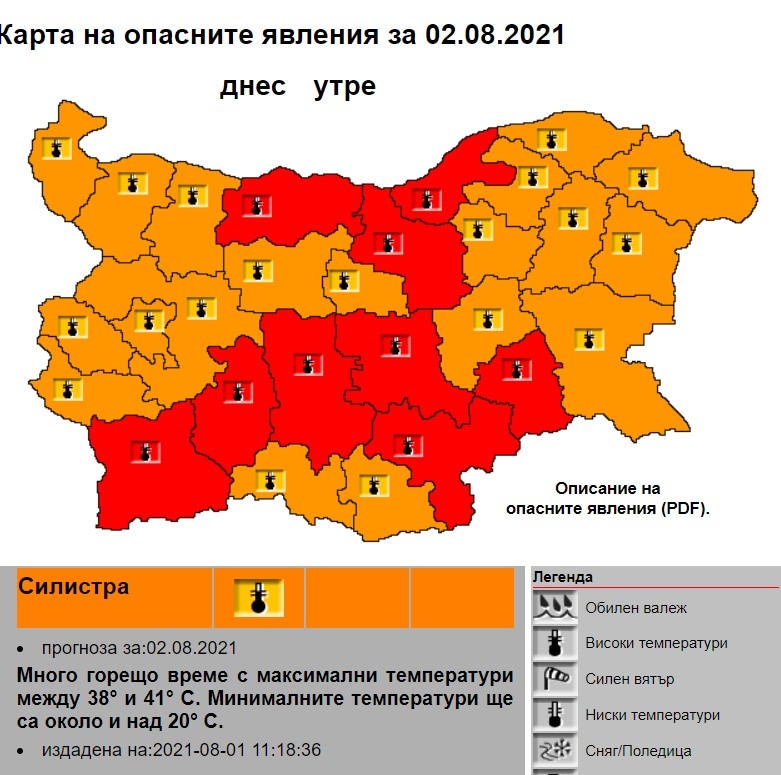 Оранжев код за опасно високи температури е в сила и за утре за област Силистра.