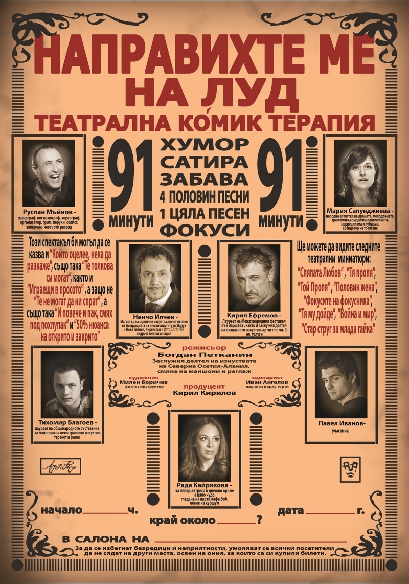 От 19:00 часа в Драматичен театър Силистра ще се играе спектакъла "Направихте ме на луд"