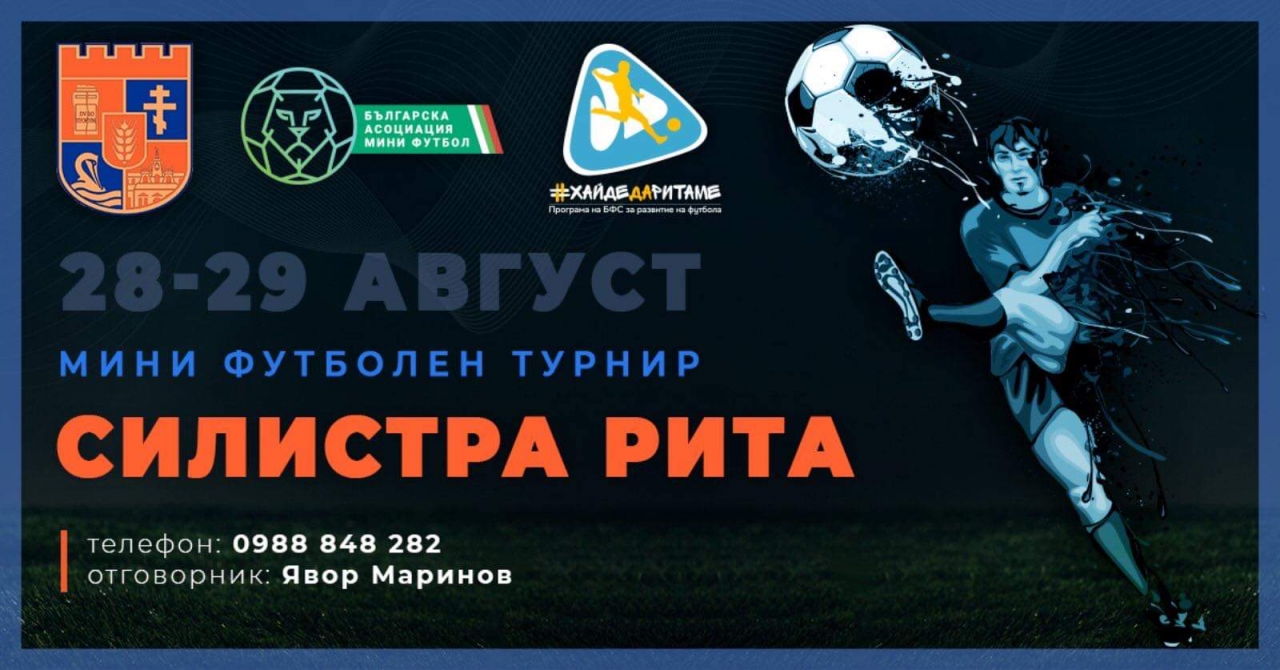 Българска Асоциация Мини Футбол стартира записване за мини футболен турнир "Силистра Рита", който ще се проведе на професионалното мини футболно игрище на Спортно училище "Дръстър" в областния град.