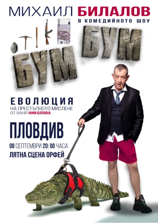 Премиерата на комедийният спектакъл "БУМ-БУМ: Еволюция на престъпното мислене" ще се състои в Силистра на 21 септември от 19.00 часа.