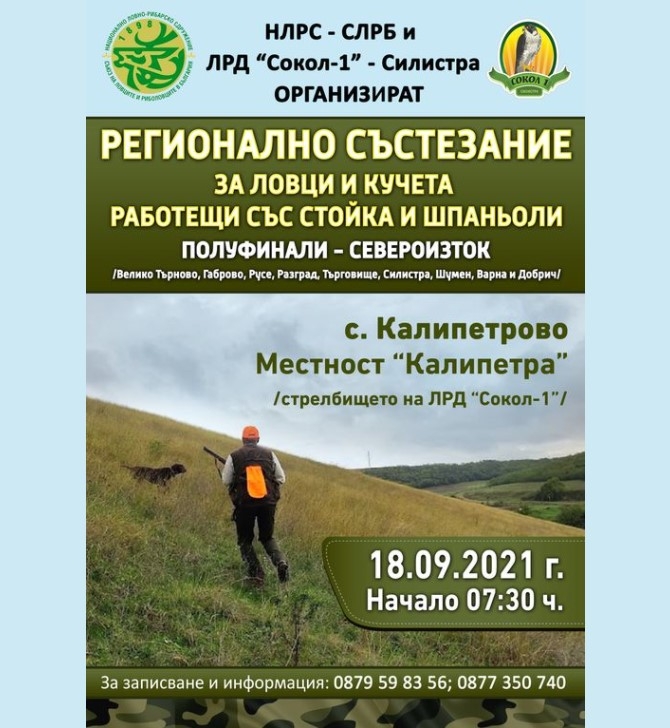На 18.09.2021 г. ще се проведе регионално състезание за ловци и кучета, работещи със стойка и шпаньоли.