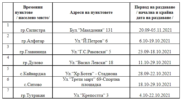 Раздаването ще се извършва от служители и доброволци на БЧК в 7 временни пункта в област Силистра по график. Всеки правоимащ гражданин ще получава полагащите му се продукти срещу документ за самоличност и подпис.