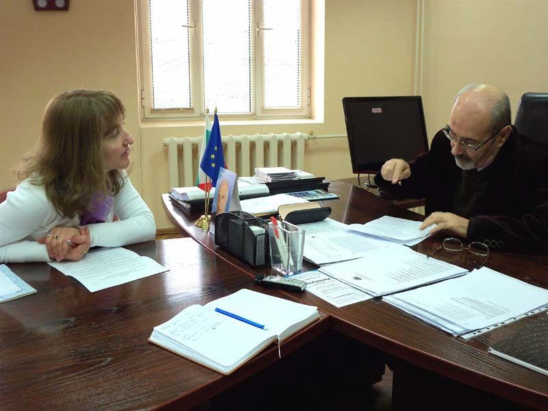 На снимката областния управител д-р Владимир Янков и секретаря на Съвета Юзлям Камберова, по време на първата им среща, при която д-р Янков е в качеството си на председател на Съвета.