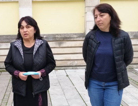 Днес в 9.00 часа пред библиотеката излязоха Красимира Няголова, синдикален лидер и временно изпълняващия длъжността директор на Регионална библиотека "Партений Павлович" Галина Раева.