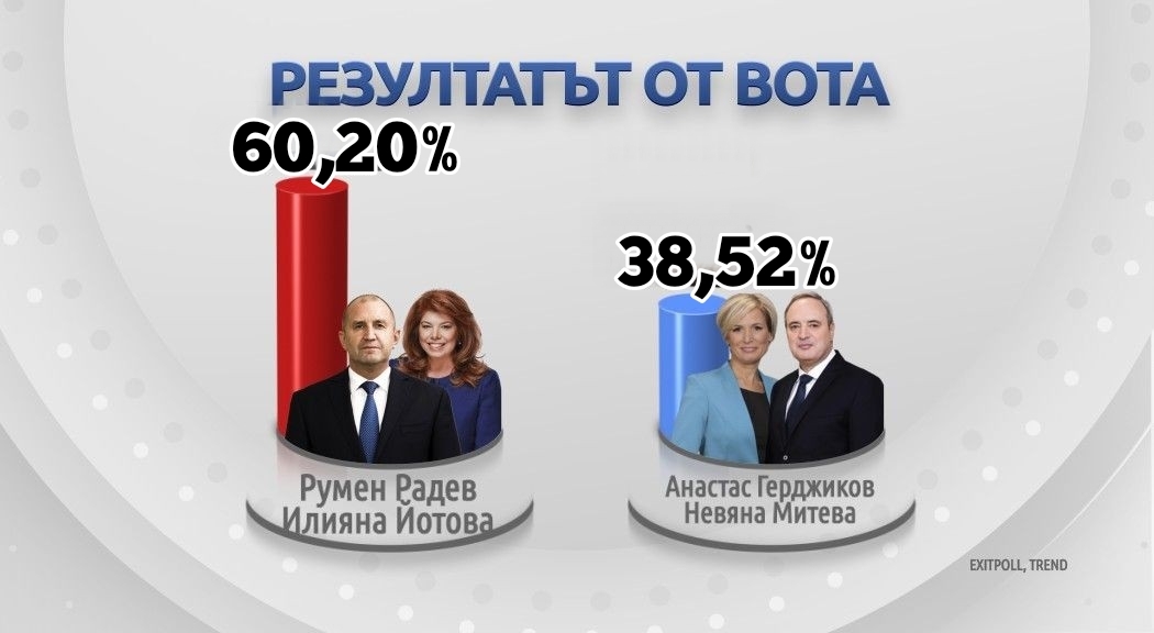 Окончателните резултати показват, че за настоящия президент са гласували 60.20% на сто от избирателите, а за проф. Анастас Герджиков своя вот са дали 38.52%.